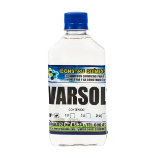El Varsol es un disolvente extraído del petróleo, incoloro o muy levemente amarillento, con olor a queroseno, y se utiliza como desengrasante, diluyente de pintura, y disolvente suave.